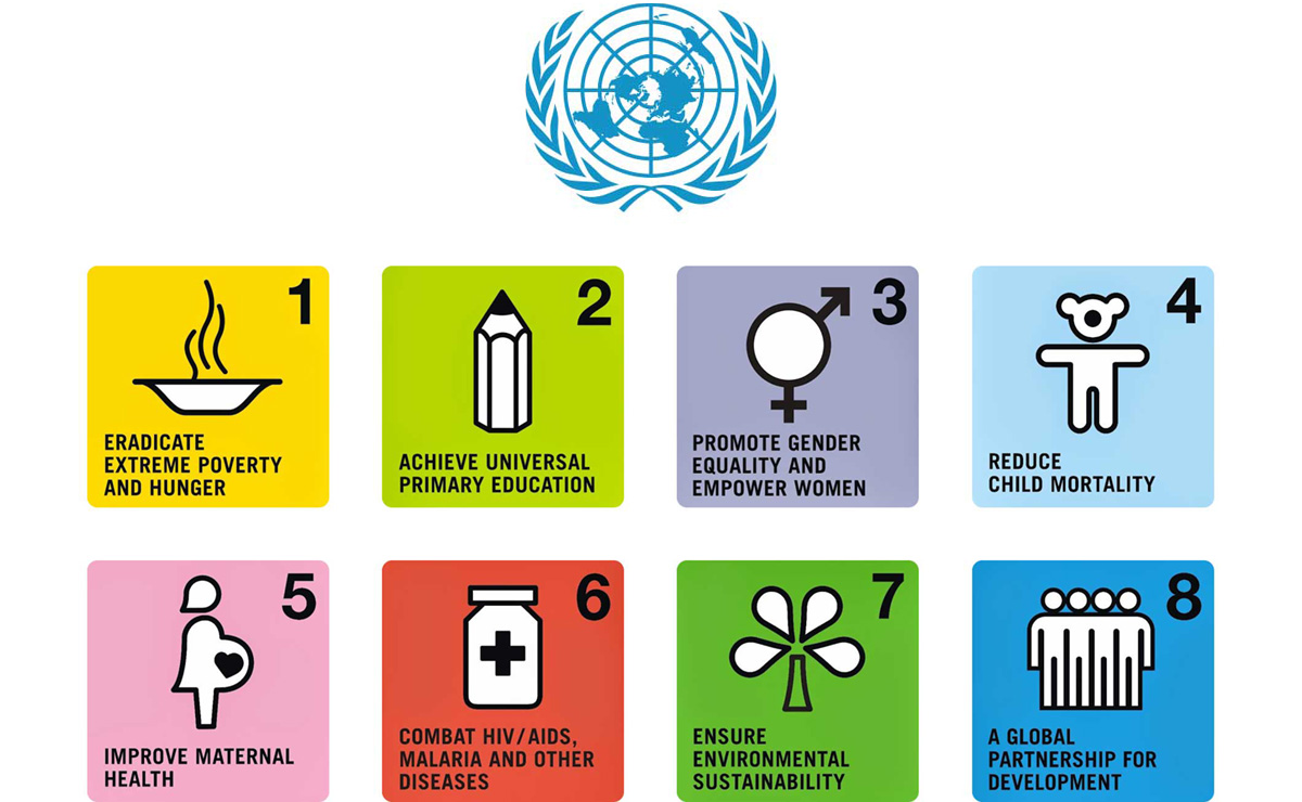 Die Vereinten Nationen formulieren gemeinsam mit der Weltbank, dem IWF und der OECD acht Entwicklungsziele bis 2015.